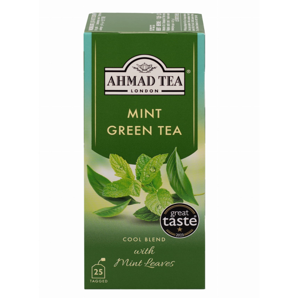 AHMAD TEA LONDON MINT GREEN TEA Mieszanka najwyższej jakości zielonej, młodej herbaty wzbogacona delikatnym, orzeźwiającym posmakiem mięty. Napój zachowuje swój piękny kolor ponieważ proces suszenia przeprowadza się natychmiast po zerwaniu najwyższej jakości młodych listków. Słodycz świeżych liści, wiele cennych witamin i składników odżywczych to sekrety zdrowia, aromatu i doskonałego smaku zielonej herbaty. Zielona herbata ożywia umysł, wspomaga trawienie, ma wyjątkowo korzystny wpływ na zdrowie między innymi ze względu na niską zawartość kofeiny. Jako mrożona idealna na upalne dni.