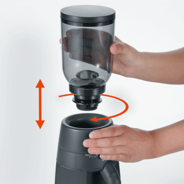 - Kompaktowa obudowa młynka została wykonana z trwałego tworzywa, a uniwersalny i nowoczesny design pozwala mu wspaniale prezentować się zarówno w domowej kuchni, jak i na blacie każdego baristy.