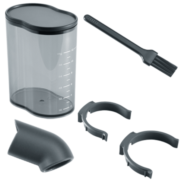 - Akcesoria: szczotka do czyszczenia, uchwyt kolby, mały uchwyt kolby, lejek, duży pojemnik na kawę mieloną, lejek do napełniania