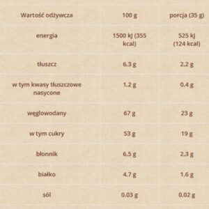 - tłuszcz 2,2g w tym kwasy tłuszczowe nasycone 0,4g