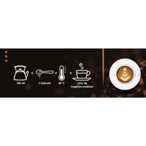 Jeśli lubisz kawę cappuccino, ale nie zawsze możesz przygotować ją jak bariści, pokochasz tę kawę! Kultowe Mokate Cappuccino o smaku rumowym w połączeniu z cynamonem wprawi Cię w świąteczny nastrój, który może się utrzymywać każdego dnia. Aromatyczne, rozgrzewające przyprawy w twojej filiżance cappuccino z puszystą pianką… Sama przyjemność! Cappuccino jest dostępne w opakowaniu z zamknięciem strunowym, które pozwala na wielokrotne otwieranie i zamykanie torebki. Cappuccino to kawa łagodna w smaku, aromatyczna, z puszystą pianką, o przyjemnej konsystencji. Uwielbiana przez kobiety i mężczyzn. Świetna jako deser, podczas rodzinnych spotkań przy stole, czy przyjacielskich pogaduszek. Doskonała na chwilę relaksu i wytchnienia – pysznie smakuje, a jej aksamitna pianka przyjemnie rozpływa się w ustach. Napoje kawowe Mokate to wyjątkowa linia produktów, którą warto mieć zawsze pod ręką. Produkty z tej linii to doskonałe i wygodne rozwiązanie w podróży, w pracy i w domu. Co ją wyróżnia? Jest szybka w przygotowaniu i nie wymaga wysiłku – wystarczy zalać wrzątkiem i zamieszać. To także doskonała alternatywa dla energetyków i innych słodkich napojów, a przy tym nie zawiera konserwantów ani tłuszczów utwardzonych. Idealnie sprawdzi się też jako „moja pierwsza kawa” – dla tych, którzy dopiero zaczynają swoją przygodę ze światem kawy. Składniki: cukier, mleczna baza [olej kokosowy, mleko w proszku odtłuszczone (10,7 %), serwatka (z mleka) w proszku, stabilizator: fosforany potasu], maltodekstryna, kawa rozpuszczalna (ekstrakt prażonego jęczmienia i żyta (3,3 %), aromaty, cynamon mielony (0,3 %). Produkt może zawierać soję i zboża zawierające gluten.