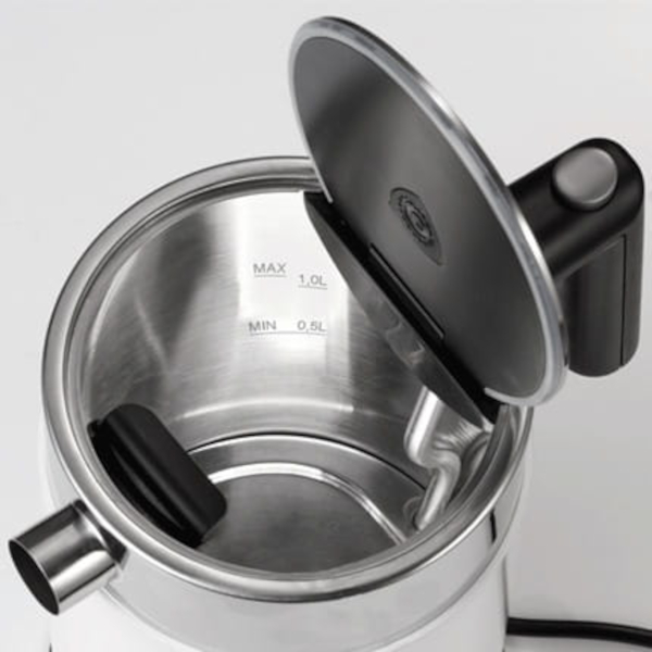 WK 61 to średniej wielkości czajnik o unikalnej konstrukcji ze stali nierdzewnej, z podwójną ścianką, bezpiecznikiem termicznym oraz wymiennym filtrem wapnia. Nowoczesny i minimalistyczny design sprawiają, że czajniki sygnowane logiem GRAEF są świetnym dodatkiem do każdej kuchni, a podstawa o obrocie 360° poprawia bezpieczeństwo i zapewnia komfort użytkowania. (Dostępny na naszej stronie w 2 wersjach kolorystycznych) Czas realizacji – 2 dni robocze