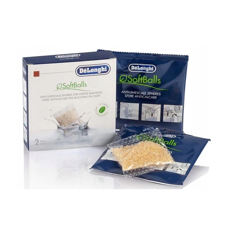 Softballs – Granulki zapobiegające osadzaniu się kamienia w ekspresach do kawy pomagają przedłużyć żywotność urządzenia. Odpowiednie do wszystkich modeli ekspresów wyposażonych w zbiornik na wodę, szczególnie tych bez możliwości zamontowania filtra. Opakowanie zawiera 2 porcje granulek. Jedną saszetkę granulek SoftBalls można używać do 3 miesięcy.