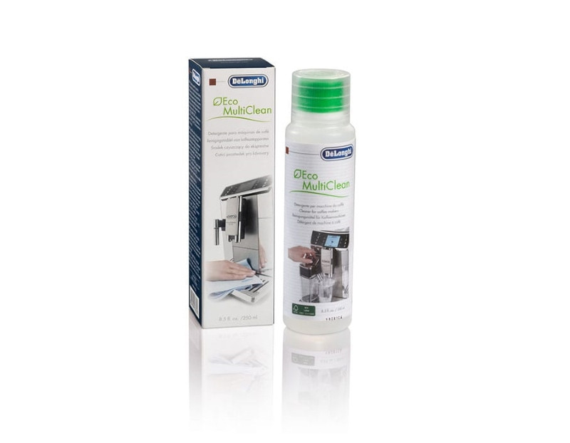 Eco MultiClean jest specjalistycznym środkiem czyszczącym układ spieniania mleka – usuwa zaschnięte pozostałości po mleku oraz przykre zapachy. Jest doskonałym preparatem do wszystkich rodzajów systemów mlecznych – zarówno automatycznych, jak i manualnych. Środek można używać do wszystkich ekspresów DeLonghi. Zaleca się czyszczenie toru mleka codziennie, jeśli robiliśmy kawy mleczne.