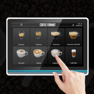 Automatyczny ekspres do kawy Coffee Format BREAK S W2L BLACK posiada duży, kolorowy wyświetlacz dotykowy o przekątnej 10,1″, który umożliwia: