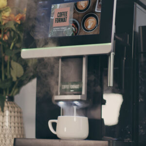 Coffee Format DEMY łączy elegancki design z wysoką wydajnością i szeroką ofertą specjałów. To idealne rozwiązanie dla stacji paliw, sklepów, hotelowych bufetów śniadaniowych oraz samoobsługowych punktów coffee-to-go.