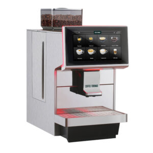 Klienci doceniają duży, 10,1-calowy ekran dotykowy, który zapewnia intuicyjną i wygodną obsługę. Ekspres Coffee Format DUKE przyciąga uwagę nowoczesną stylistyką: minimalistyczną, solidną bryłą ze stali nierdzewnej oraz efektownie podświetlanym frontem, którego kolor iluminacji można dowolnie wybrać z palety RGB. Ekspres może dyskretnie wtopić się w otoczenie lub stać się wyróżniającym się elementem aranżacji.