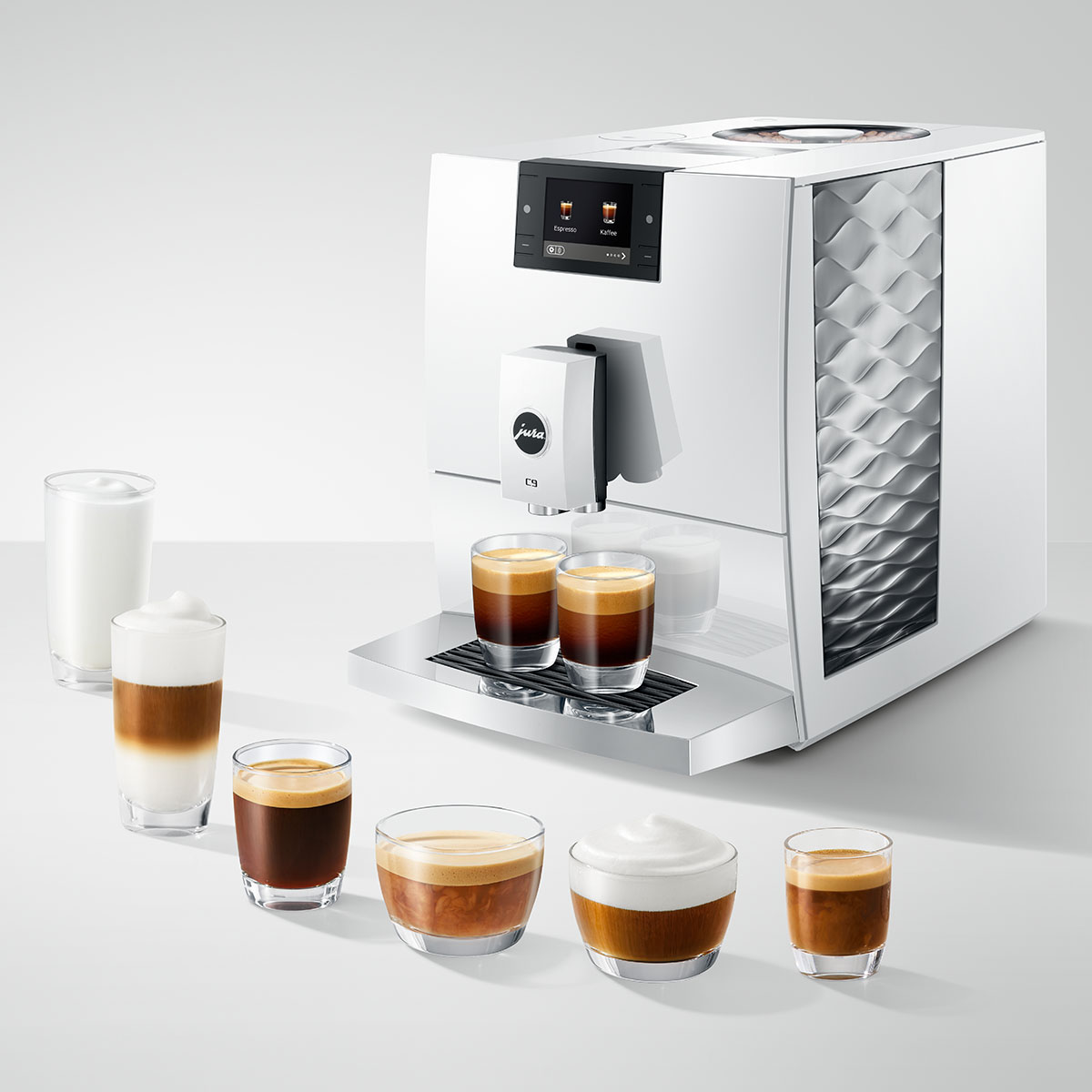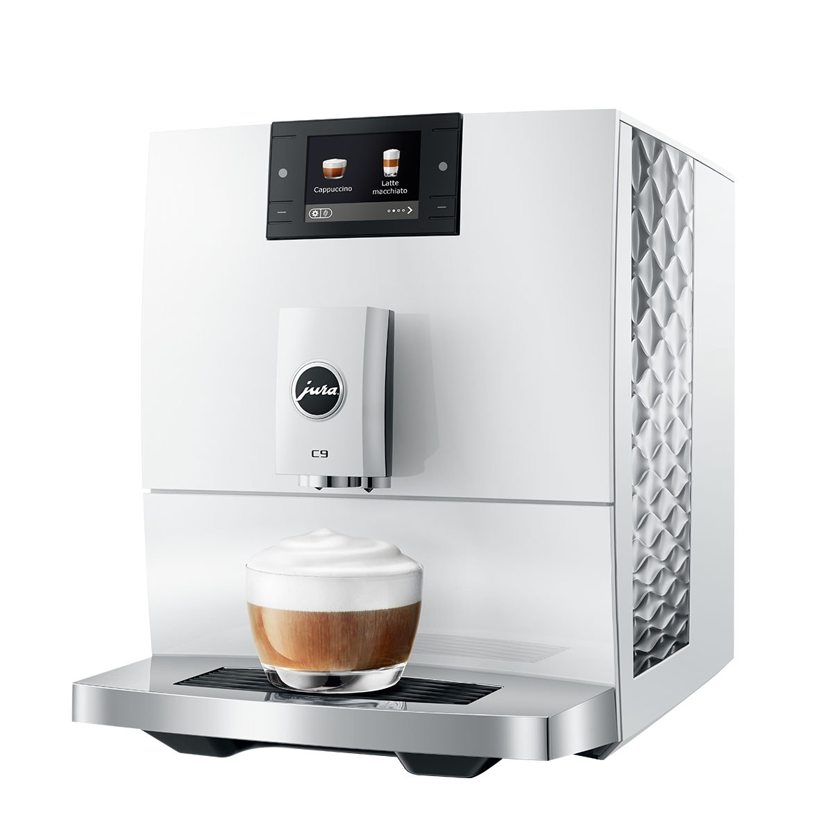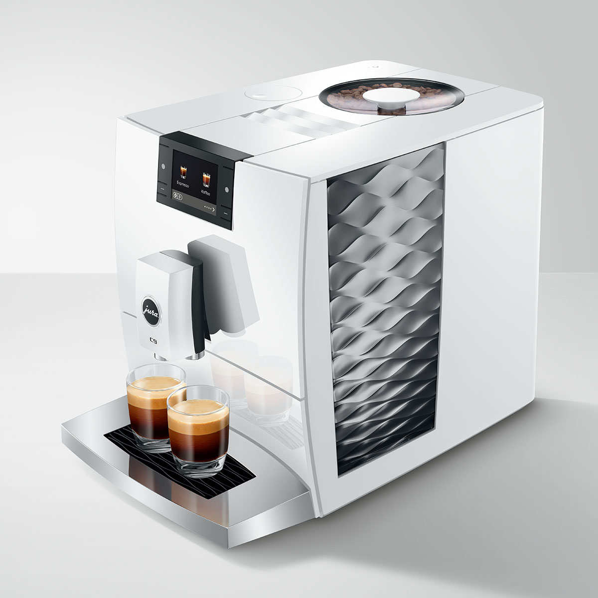 JURA C9, inspirowana klasą premium, zachwyca połączeniem klasycznego uroku i nowoczesnej elegancji. Charakterystyczny wypukło-wklęsły front nie tylko przyciąga wzrok, ale też tworzy idealną scenę do efektownego zaprezentowania perfekcyjnie zaparzonej kawy.