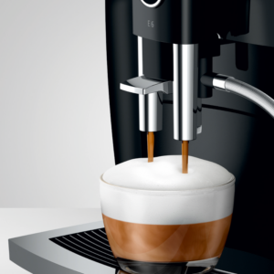Model E6 (EC) Dark Inox to profesjonalny ekspres szwajcarskiej marki JURA. Wyróżnia się prostą obsługą, doskonałym rezultatem parzenia kawy oraz jasnym wzornictwem. To doskonały wybór dla konsumentów pijących w większości kawy czarne. Manualne pokrętło do spieniania mleka pozwoli nam przygotować również perfekcyjne cappuccino. Umieszczone z przodu przyciski i nowoczesny kolorowy wyświetlacz pozwolą nam intuicyjnie i bezproblemowo przejść przez proces przygotowania naszego napoju, a specjalny młynek Professional Aroma Grinder wydobędzie z ziaren aż o 12.2% głębszy aromat w porównaniu z młynkami tradycyjnymi. Model EC wyróżnia się dyszą Easy Cappuccino umieszczoną centralnie pomiędzy wylewkami kawy czarnej, oraz funkcją Extra Shot dla wybranych specjałów mlecznych. Jeszcze więcej specjałów dających jeszcze większą rozkosz Nowy E6 (EC) wie, jak zapunktować swoją różnorodnością i estetyką. Oprócz kawowych klasyków i specjałów udoskonalonych pianką mleczną opanował sztukę przyrządzania kawy Barista, lungo Barista, espresso doppio oraz espresso macchiato. W ekspresie E6 (EC) można przyrządzić łącznie 11 różnych specjałów kawowych. W Kawawbiurze.pl wierzymy, że klucz do głębokiego i wyrazistego smaku kawy leży w sposobie jej przyrządzania. Firma JURA udoskonaliła od podstaw proces parzenia kawy espresso. Z tego też powodu specjały przyrządzane w ekspresie E6 (EC) w pełni dorównują jakości znanej bywalcom kawiarni.