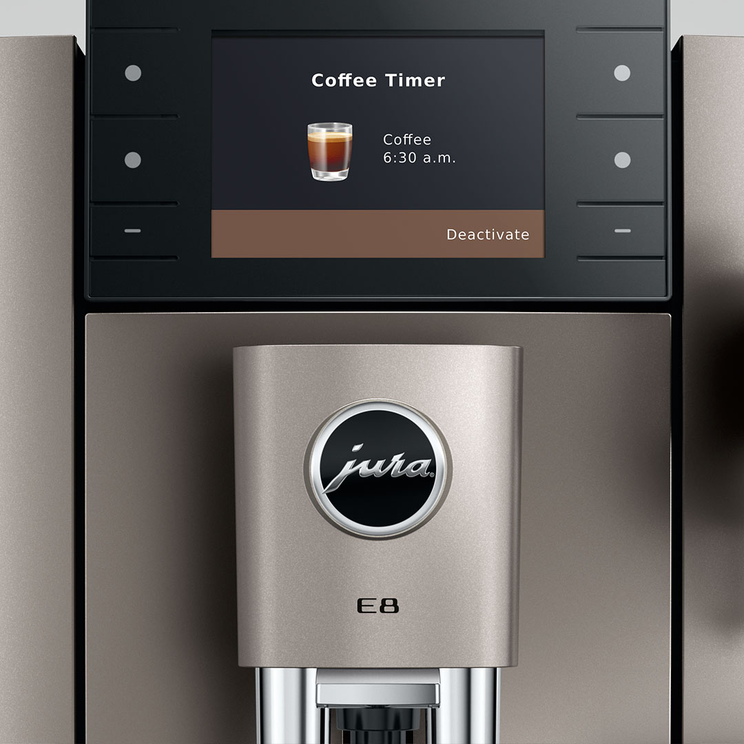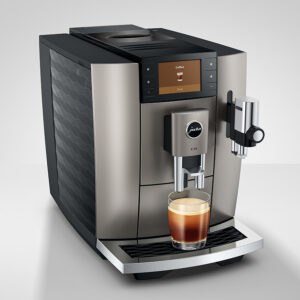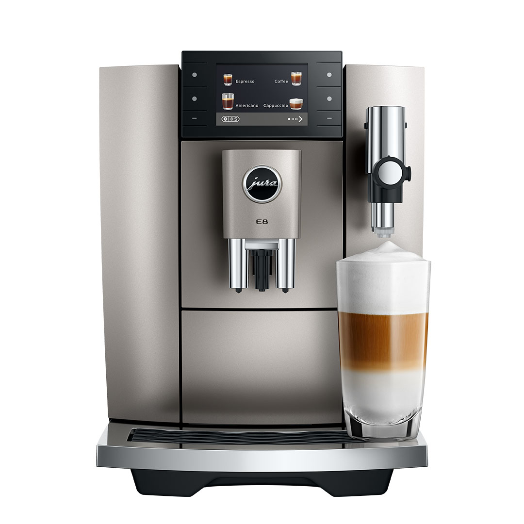 Dzięki szerokości zaledwie 27 cm, model E8 doskonale komponuje się nawet z mniejszymi przestrzeniami kuchennymi, zachwycając zarówno wyrafinowanym wyglądem, jak i niezrównanymi doznaniami kawowymi.