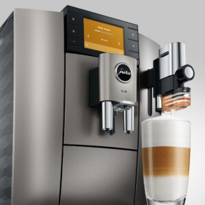 Nowa generacja ekspresu JURA E8 w pełni odpowiada wysokim oczekiwaniom stawianym najlepiej sprzedającemu się modelowi marki. Urządzenie zachwyca doskonałą jakością przygotowywanych napojów, intuicyjną obsługą oraz eleganckim, nowoczesnym wzornictwem, które podkreśla wyjątkowy charakter ekspresu. Dzięki zaawansowanej technologii Jura, ekspres umożliwia przygotowanie aż 27 klasycznych i specjalnych kaw za naciśnięciem jednego przycisku — zawsze w perfekcyjnej, kawiarnianej jakości.