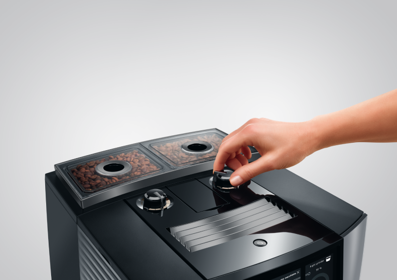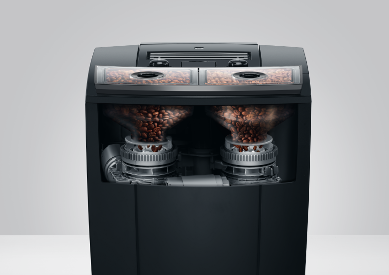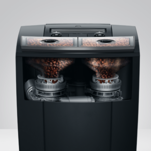 Dwa młynki P.A.G.3+ z możliwością prostej regulacji pozwalają na dobranie grubości zmielenia ziaren bezpośrednio do każdego napoju kawowego. Oznacza to, że za każdym razem ekspres Jura J10 Twin wydobywa maksymalną ilość aromatu z ziaren i przenosi go do naszych filiżanek. Przy wybieraniu specjału, ekspres sam zaleci odpowiednie ustawienie intensywności aromatu. Przy krótkich specjałach, takich jak espresso, bądź ristretto, młynek poprosi o ustawienie bardziej intensywnego aromatu. Zaś przy wyborze większych kaw, w celu uzyskania pełnego smaku, ekspres zaleci ustawienie aromatu na łagodny. Poza udoskonaleniami odczuwalnymi w smaku kawy oraz intensywności aromatu, nowy model młynka został również udoskonalony pod kątem poziomu hałasu. Nowa konstrukcja Sound Design inspirowana technologią Formuły 1 podnosi kulturę pracy młynka na jeszcze wyższy poziom.