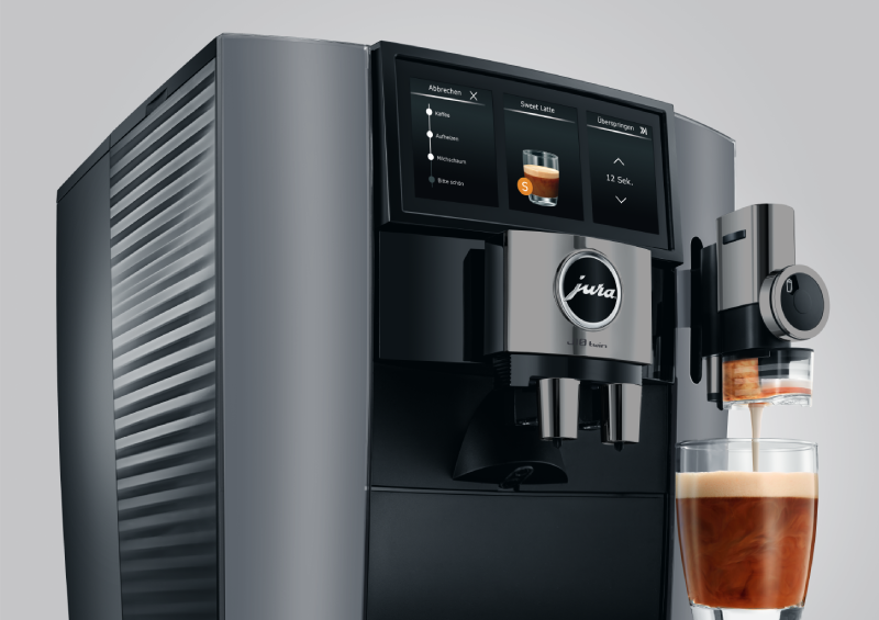 Jura ponownie zaskakuje. Tym razem udogodnieniem, które sprawia że przygotowanie twojej ulubionej kawy jest jeszcze łatwiejsze. Niezależnie od tego, czy masz ochotę na czarną kawę ze środkowej wylewki, czy na mleczny specjał z bocznej wylewki cappuccino. Inteligentny czujnik Coffe Eye sam wykrywa położenie filiżanki i automatycznie dostosowuje wybór specjałów na wyświetlaczu. Dzięki temu obsługa ekspresu staje się jeszcze bardziej intuicyjna i bezproblemowa, a my możemy cieszyć się idealną kawą.
