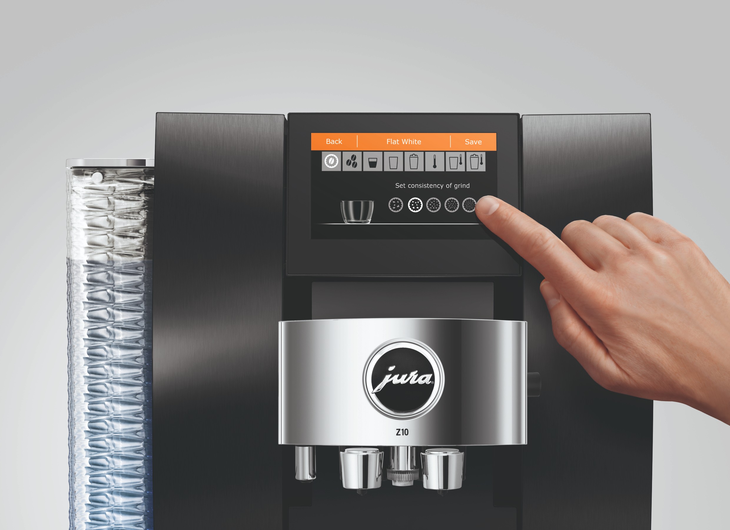 JURA Z10 Aluminium Black daje także możliwość ręcznego wyboru stopnia mielenia przed przygotowaniem każdego napoju dzięki funkcji Aroma Selection.
