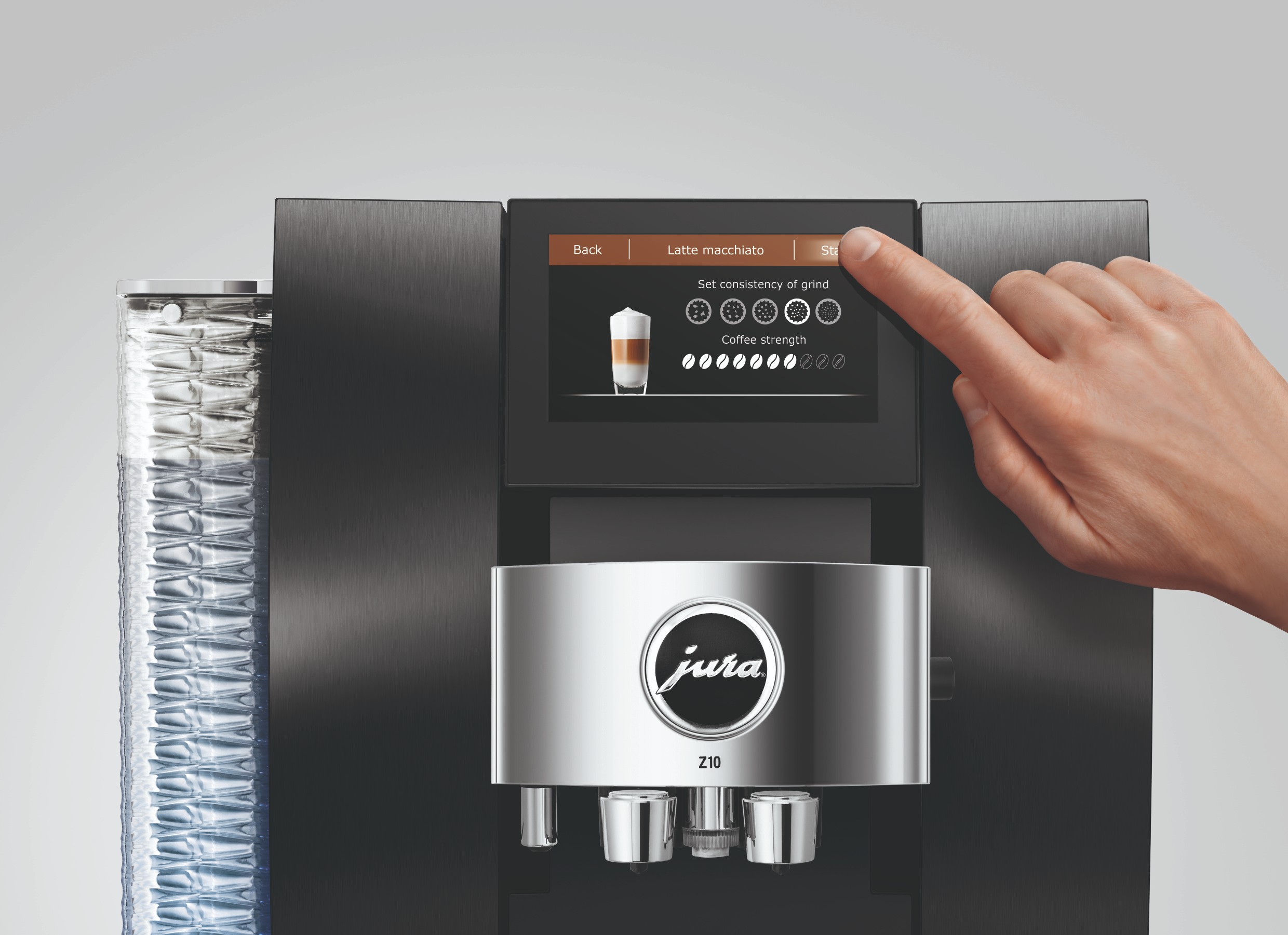 JURA Z10 Aluminium Black wykorzystuje dodatkowo elementy sztucznej inteligencji, które dopasowują sposób prezentowania menu do preferencji użytkownika. Wszystko to sprawia, że korzystanie z ekspresu jest intuicyjne, płynne i dostosowane do indywidualnych potrzeb.