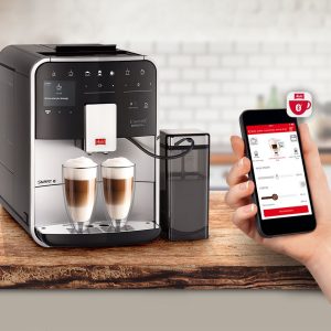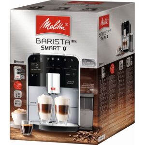 Melitta BARISTA T SMART to profesjonalny ekspres automatyczny przeznaczony do użytku domowego i niewielkich biur. T SMART zapewnia wysoką jakość napojów jednocześnie będąc bardzo łatwy w obsłudze. Intuicyjne menu sprawia, że zrobienie każdej kawy zajmuje tylko kilka sekund. Ekspres Barista T SMART pozwala przygotować pyszne kawy czarne i równie wyśmienite kawy mleczne. Ekspres Melitta Barista T Smart cechuje niezwykle smukły design zaprojektowany przez niemiecką firmę. Ekspres jest bardzo zgrabny, idealnie wpasuje się w każdą kuchnię. Ekspres został wyposażony w najnowocześniejsze technologie, które gwarantują najwyższą jakość kawy oraz satysfakcję z użytkowania urządzenia. T Smart umożliwia przygotowanie aż 18 różnych napojów. Za pomocą jednego kliknięcia możemy zaparzyć kawę mleczną, a wylewka All-in-one sprawia, że nie trzeba przesuwać przy tym filiżanki. Ekspres T Smart pozwala robić 2 kawy mleczne na raz. Jest to optymalny wybór dla osób ceniących nowoczesne technologie, ponieważ ekspres wyposażony jest w system bluetooth, co pozwala na sterowanie nim z aplikacji za pomocą telefonu lub tabletu. Możemy w łatwy sposób przygotować wszystkie wybory kawowe nawet nie podchodząc do ekspresu. Dzięki intuicyjności tej aplikacji znacznie łatwiej obsługujemy procesy czyszczenia ekspresu – są w niej dostępne także filmy instruktażowe. Ekspres został wyposażony w dwa osobne pojemniki na kawę ziarnistą, co umożliwia używanie dwóch innych rodzajów kaw na przemian – wedle uznania (np. espresso do kaw czarnych oraz cafe creme do kaw mlecznych). W ekspresie na bieżąco należy wymieniać filtry oraz czyścić urządzenie przeznaczonymi do tego środkami. Wbrew pozorom nie jest to absolutnie nic trudnego. W ekspresie T Smart istnieje możliwość zamontowania filtra Pro Aqua, dzięki któremu odkamienianie może odbyć się jedynie raz w roku. Ekspres posiada funkcję easy cleaning, która pozwala na szybkie przepłukanie toru spieniania mleka za pomocą wody znajdującej się w ekspresie bez użycia jakichkolwiek dodatkowych akcesoriów. Cały zestaw akcesoriów do ekspresów Melitta dostępny jest w naszym sklepie. Ekspres posiada także funkcję Moja kawa, która umożliwia spersonalizowanie danego produktu nawet pod 4 inne osoby. Niezawodność i intuicyjność ekspresu sprawiają, że jest on bardzo często wybierany przez naszych klientów. Jest to zdecydowanie jeden z najlepszych wyborów jeśli chodzi o ekspresy domowe. W zestawie z ekspresem dołączany jest 1-litrowy, jakościowy pojemnik na mleko Melitta. Ekspres jest jednym z wytrzymalszych na rynku. Jego dzienną wydajność ocenia się nawet na 30 kaw. Wszystkie ekspresy Melitta objęte są 24 miesięszną gwarancją door-to-door, również przy zakupie dla firm na fakturę VAT.