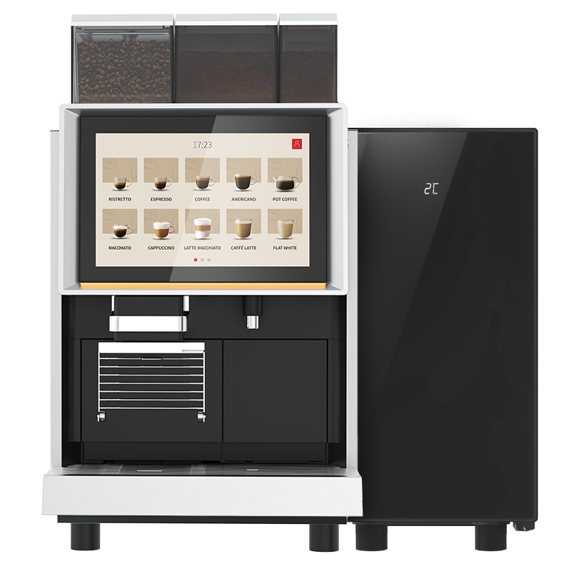 Dwa zbiorniki na produkty instant oraz zautomatyzowany system mleczny z dedykowaną pompą i chłodziarką zapewniają szybkie przygotowanie szerokiej gamy kawowych specjałów – od gorącej czekolady, przez Mokkę i Irish Cream, po kawy smakowe i waniliowe cappuccino. Każdy kawowy specjał może zawierać delikatną mleczną pianką, serwowaną na ciepło lub na zimno.