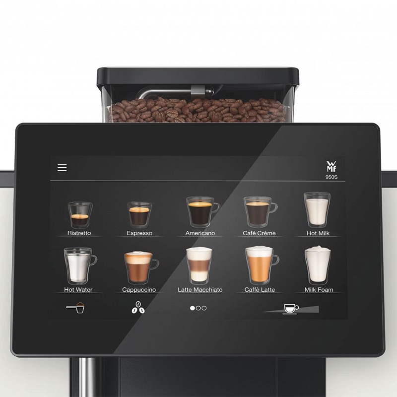 Profesjonalna jakość kawy w kompaktowej konstrukcji – nowy WMF 950 S to idealny w pełni automatyczny ekspres do kawy dla mniejszych firm, usługodawców i start-upów, którzy nie chcą rezygnować z maksymalnej przyjemności z kawy. Ekspres sprawdzi się również w użytku domowym, jest on dla osób ceniących jakość i smak kawy. Dzięki szerokiej gamie napojów prostej obsłudze oraz niezawodnej i długotrwałej wydajności nasza najmniejsza profesjonalna maszyna nie tylko inspiruje nasz własny zespół, ale także spełnia wymagania Twoich klientów.