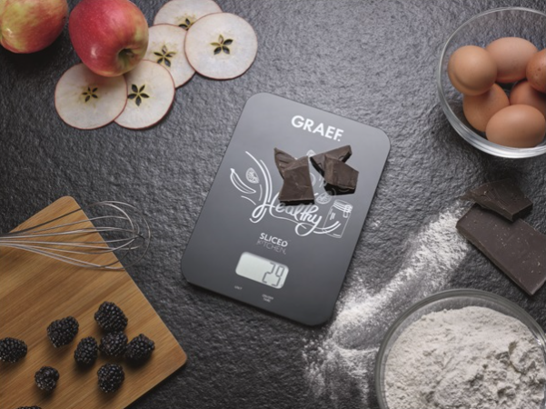 Cyfrowa waga kuchenna marki GRAEF stanowi uzupełnienie wyposażenia każdej kuchni. Waga operuje z dokładnością do 1 grama i posiada wszystkie funkcje które przydadzą się podczas codziennego użytkowania. Są to: wskaźnik przeciążenia, funkcja ważenia od 1gr do 5kg, automatyczny wyłącznik i funkcja tarowania. Powierzchnia wagi wykonana jest ze szkła w nowoczesnym stylu GRAEF SlicedKitchen. Po użyciu wagę można łatwo i sprawnie wyczyścić, a przyciski sensorowe i duży wyświetlacz o wielkości 20 mm ułatwiają obsługę.