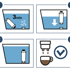 - Zamontuj wypełniony wodą filtr w zbiorniku zgodnie z instrukcją obsługi ekspresu.