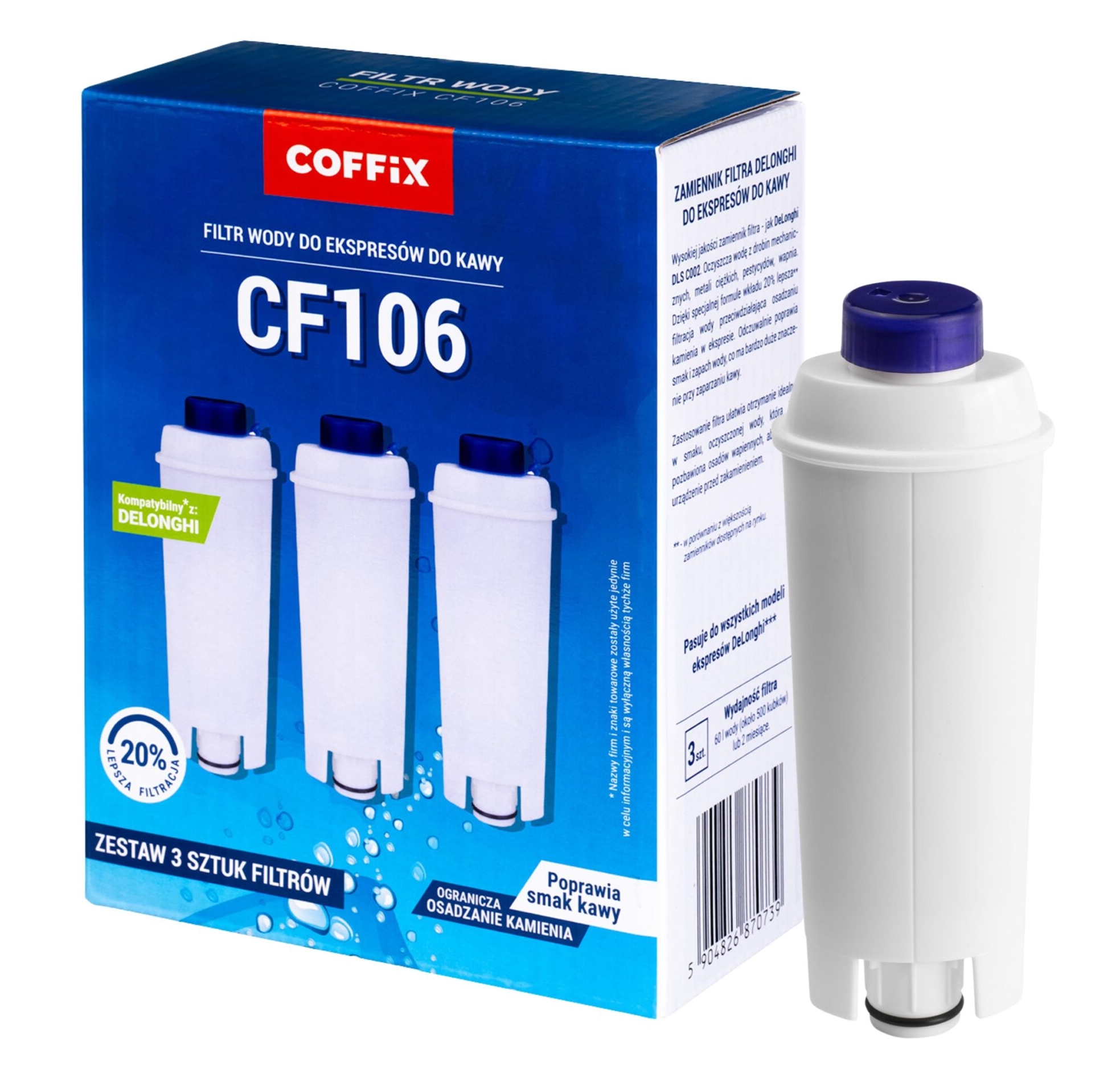 - Pewność – zawsze masz pod ręką filtr gotowy do wymiany, co chroni Twój ekspres przed kamieniem i przedłuża jego żywotność.
