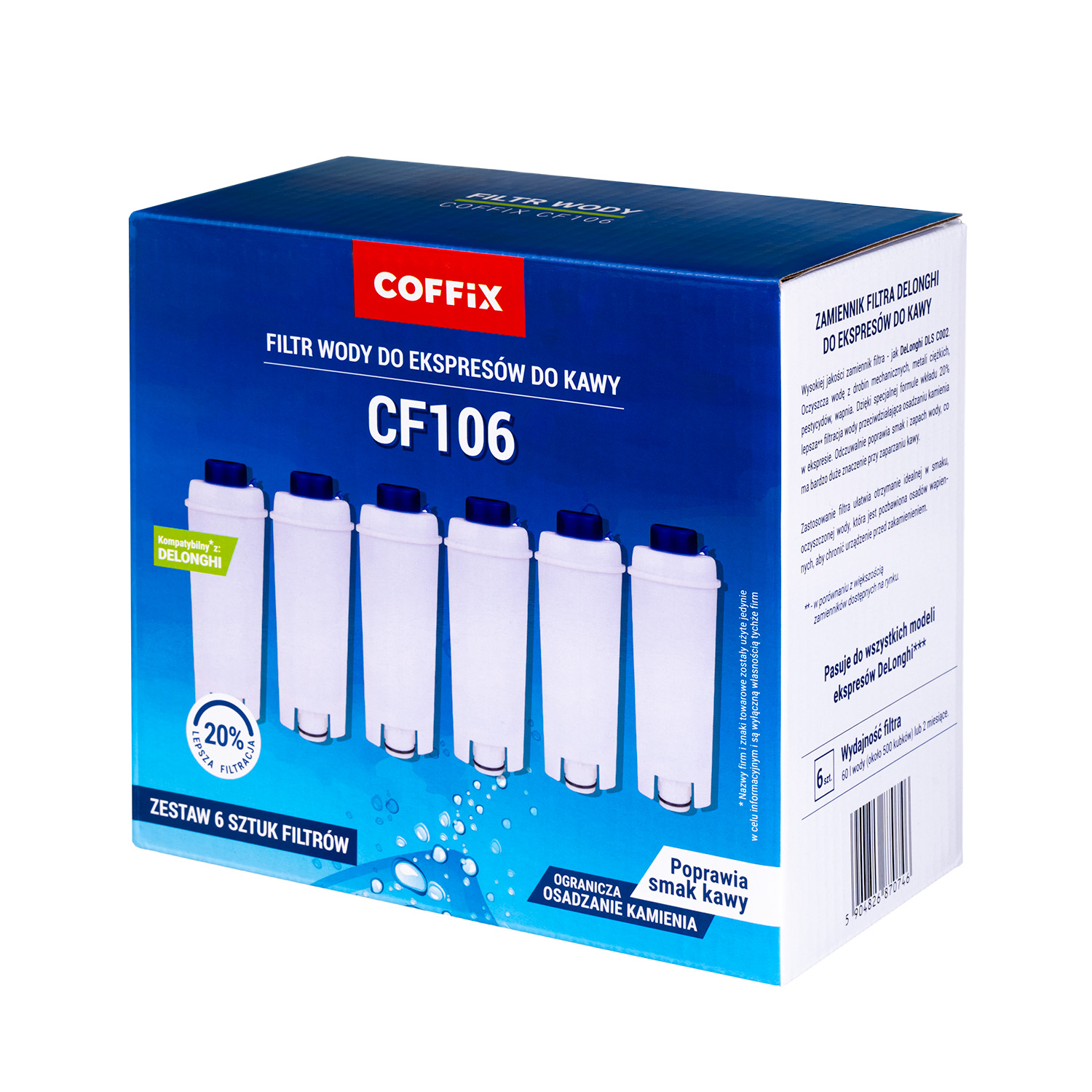 - Pewność – zawsze masz pod ręką filtr gotowy do wymiany, co chroni Twój ekspres przed kamieniem i przedłuża jego żywotność.