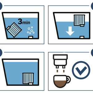 - Zamontuj wypełniony wodą filtr zgodnie z instrukcją obsługi ekspresu.