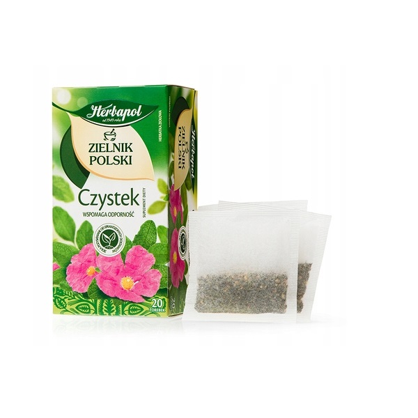 Suplement diety – herbatka ziołowa Czystek to krzew, który zaliczamy do rodziny czystkowatych. Do przygotowania bogatych w benefity naparów stosuje się liście czystka, choć sam krzew może też pełnić funkcje ozdobne, z uwagi na piękne, różowe kwiaty. Czystek jest źródłem naturalnych przeciwutleniaczy, które neutralizują wolne rodniki w organizmie, przez co chronią komórki i tkanki przed uszkodzeniem. Dzięki temu czystek wspomaga odporność organizmu. Dlatego też czystek jest w szczególności polecany w okresie jesiennym i zimowym. Skład: 100% liści czystka