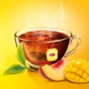 Sposób przygotowania: Zalej jedną piramidkę 200-250 ml wody o temperaturze 95-100°C. Parz przez 2-3 minuty, aby uzyskać idealny smak i aromat. Skład: herbata czarna¹, naturalne aromaty, brzoskwinie (3 %), mango (3 %). ¹Certyfikowane Rainforest Alliance. Przechowywanie: Najlepiej przechowywać w suchym, ciemnym miejscu, w temperaturze otoczenia. Data przydatności znajduje się na spodzie opakowania. Wartości odżywcze w 100 ml: Energia <17 kJ/ < 4 kcal; Tłuszcz: 0g w tym kwasy tłuszczowe 0g; Węglowodany 0g w tym cukry 0g; Białko 0g; Sól 0g. *1 torebka parzona w 200 ml świeżo zagotowanej wody przez 2-3 minuty (bez mleka i cukru).