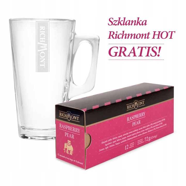 Herbata Richmont Raspberry Pear 12 szt + SZKLANKA HOT
