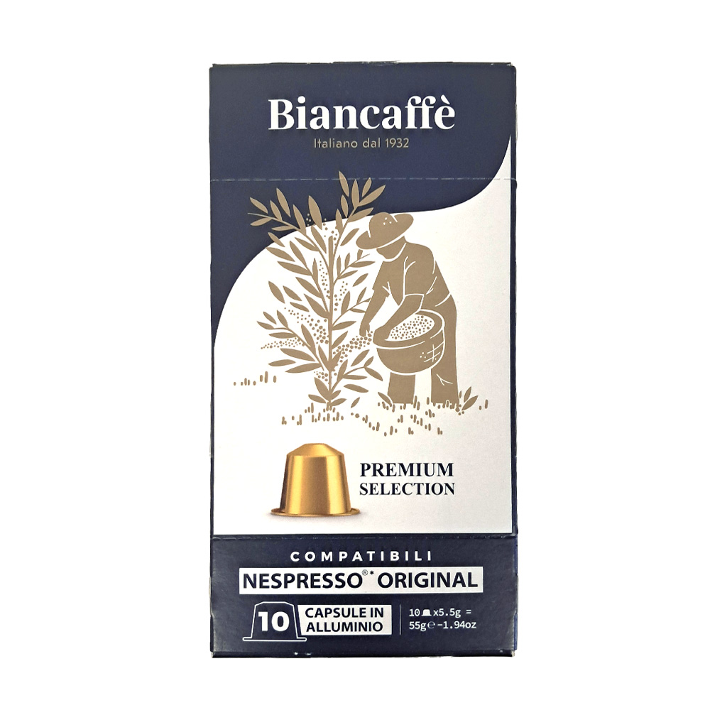 Włoska tradycja palenia kawy zamknięta w hermetycznej, aluminiowej kapsułce. Kapsułki Biancaffè to idealny wybór dla miłośników klasycznego smaku włoskiej kawy, którzy posiadają ekspres obsługujący kapsułki w standardzie NESPRESSO* Każda kapsułka zawiera oryginalną mieszankę selekcjonowanych ziaren od Biancaffè, cenioną przez koneserów kawy za jej smak i aromat. Opakowanie zawiera 10 hermetycznych kapsułek aluminiowych. Kapsułki kompatybilne z systemem NESPRESSO*