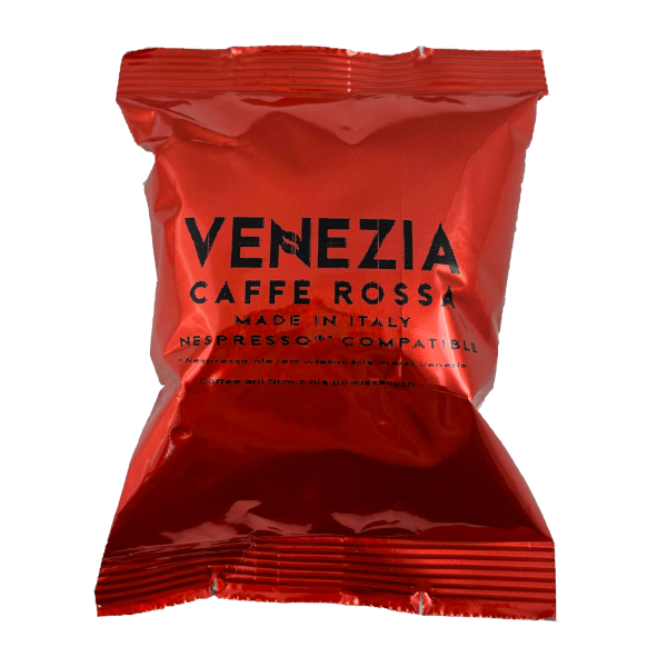 Kapsułki VENEZIA CAFFE ROSSA charakteryzują się pełnym, intensywnym smakiem i zrównoważoną mocą, która idealnie komponuje się zarówno w kawach czarnych i mlecznych.