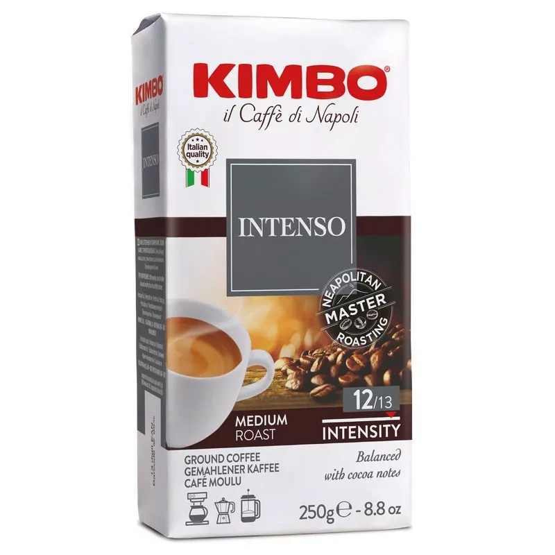 Kimbo Aroma Intenso 250g to wyjątkowa kawa mielona stworzona w duchu neapolitańskiej tradycji palenia. Łączy w sobie najlepsze ziarna Arabiki i Robusty pochodzące z Ameryki Południowej i Środkowej, dzięki czemu oferuje zrównoważony, głęboki smak z nutami gorzkiej czekolady i wyraźnym aromatem prażonych orzechów.
