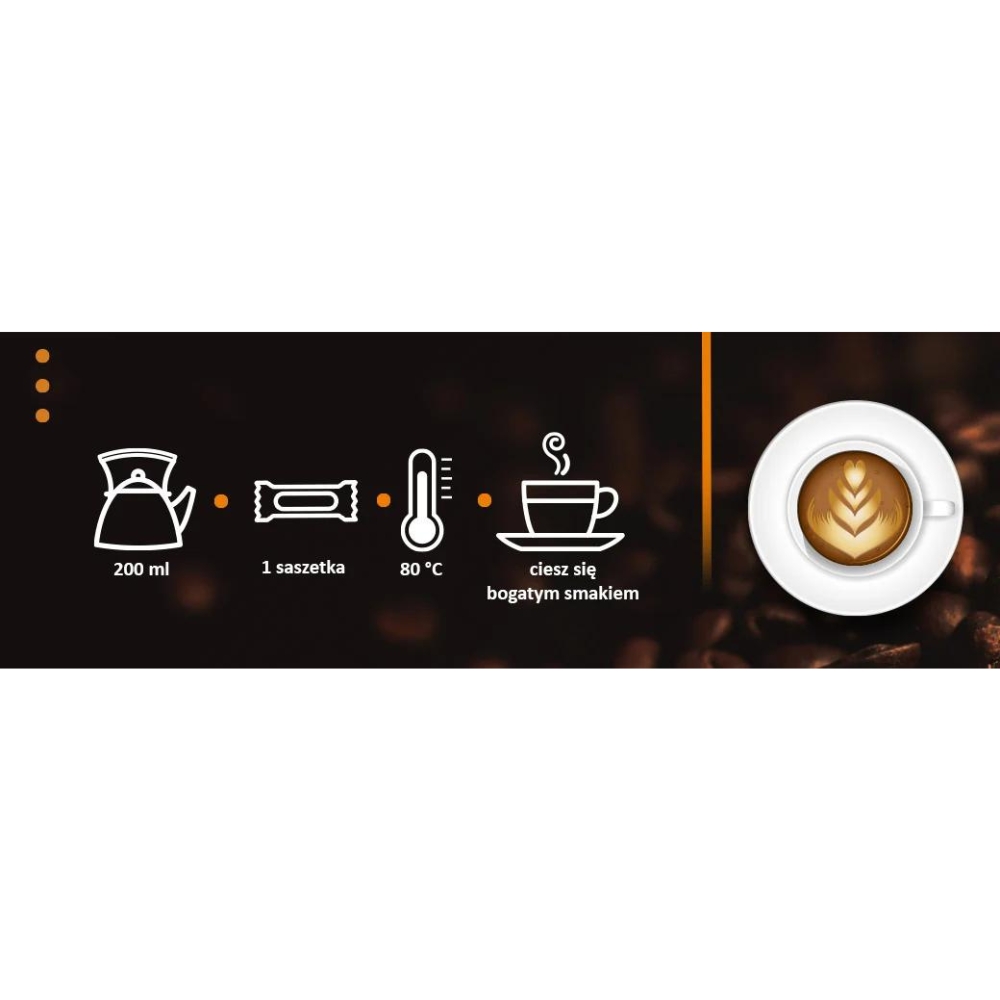 Czy kawa może smakować inaczej niż zwykle? Tak, z czekoladą, pomarańczą i cynamonem może smakować wybornie. Spróbuj i oceń sam! Kultowe Mokate o smaku czekolady z pomarańczą w połączeniu z cynamonem wprawi Cię w świąteczny nastrój, który może się utrzymywać każdego dnia. Aromatyczna, rozgrzewająca w twojej filiżance cappuccino z puszystą pianką… Sama przyjemność! Mokate 3w1 jest dostępne w opakowaniu zbiorczym, które zawiera 12 saszetek. Napoje kawowe Mokate to wyjątkowa linia produktów, którą warto mieć zawsze pod ręką. Każda saszetka zawiera wszystko, czego potrzebujesz, gdy marzysz o dobrej kawie. Produkty z tej linii to doskonałe i wygodne rozwiązanie w podróży, w pracy i w domu. Nowa receptura z kawą drobno mieloną zawiera idealne proporcje składników. Napój kawowy Od dekad jest jednym z najpopularniejszych i ulubionych napojów kawowych Polek i Polaków. Łatwy i szybki w przygotowaniu napój kawowy Mokate z dodatkiem kawy drobno mielonej, która wzmacnia smak tego napoju. Produkty nie zawierają konserwantów oraz olejów utwardzonych. Składniki: Cukier, syrop glukozowy, olej kokosowy, kawa [kawa rozpuszczalna (8,95%); kawa palona drobno mielona (0,05%)], czekolada do picia o obniżonej zawartości tłuszczu (8 %) [cukier, kakao w proszku o obniżonej zawartości tłuszczu], koncentrat soku pomarańczy w proszku (0,18 %), białka mleka, cynamon mielony (0,3 %), aromaty, sól, stabilizator: fosforany potasu, emulator: mono- i diglicerydy kwasów tłuszczowych. Produkt może zawierać soję i zboża zawierające gluten.