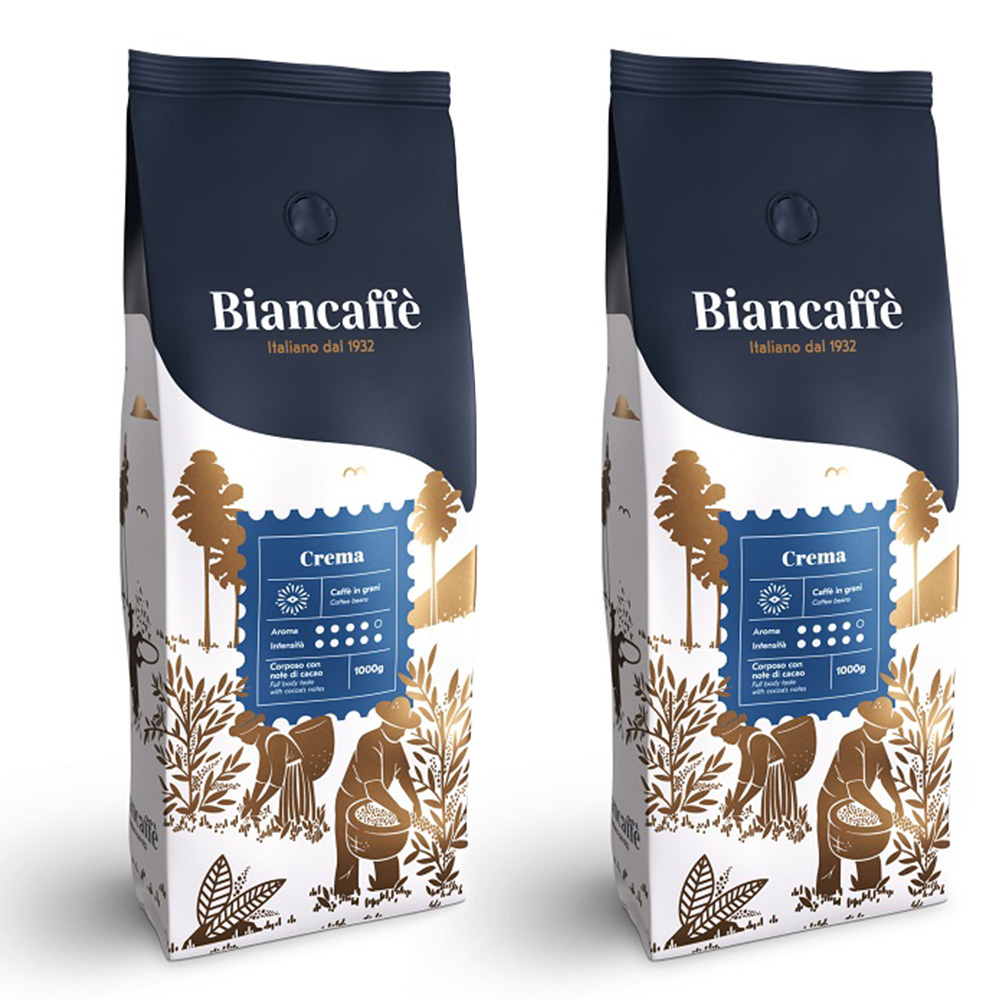 Biancaffe Espresso Crema to kawa palona w klasycznym, włoskim stylu z przewagą ziaren Robusty z Ugandy i Etiopii 70% oraz Brazylijskiej Arabiki 30% Kawa z tego regionu charakteryzuje się wyjątkową równowagą z nutami karmelu i kokosa. Kawa BianCaffè Espresso Crema zachwyca lekką kwasowością i tworzy doskonałą piankę. Staranna selekcja ziaren i nowoczesne technologie użyte przy paleniu sprawiają, że kawy Biancaffe cieszą się niezwykle pełnym smakiem. W zestawie znajdują się 2kg kawy pakowane po 1kg