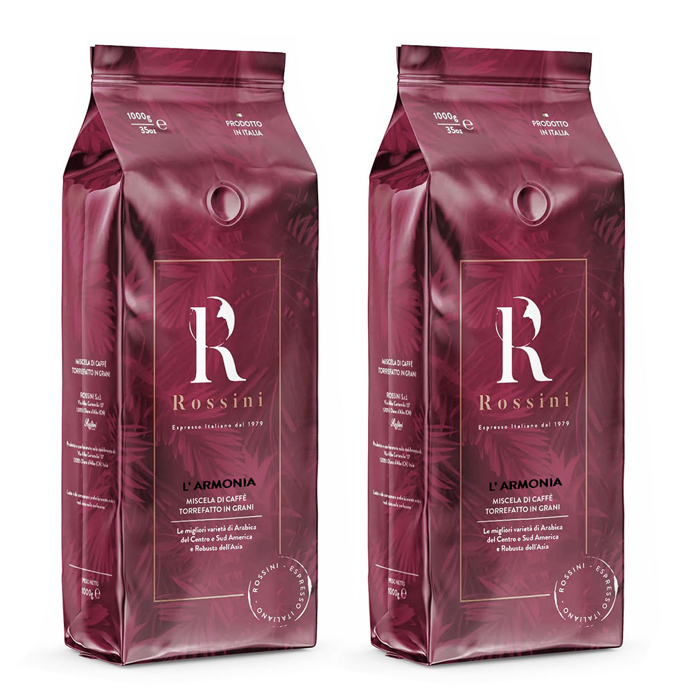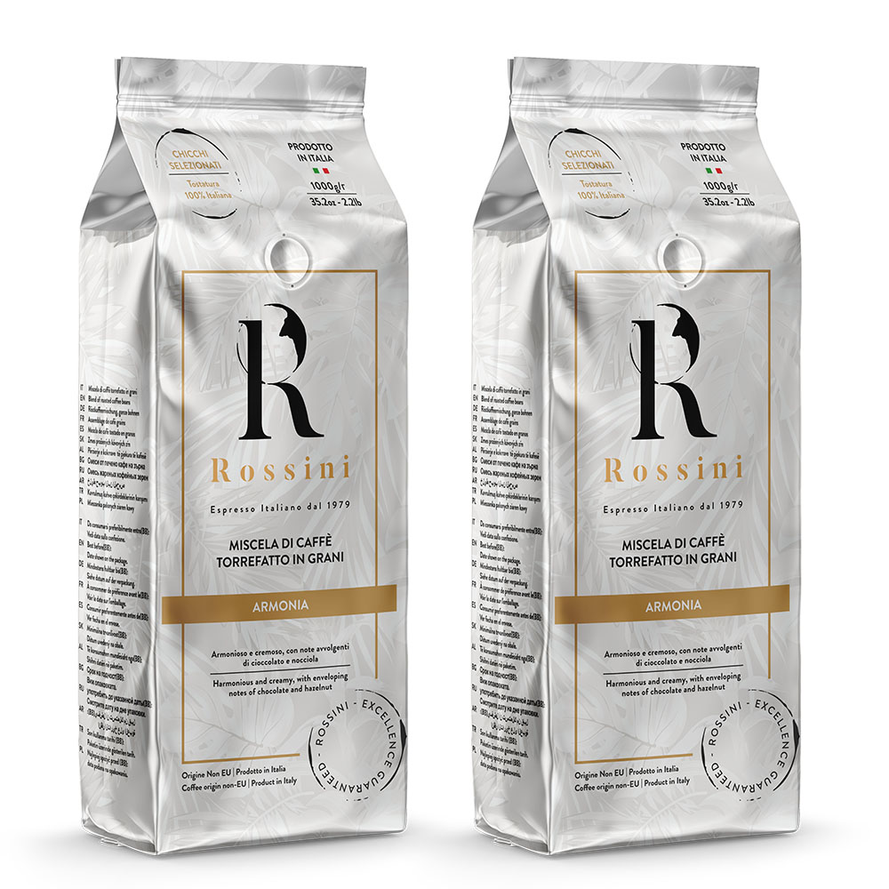 Marka Rossini Caffe to owoc lat doświadczeń i pasji do doskonałego smaku. Manufaktura Rossini Caffe zajmuje się wytwarzaniem kawy najwyższej jakości, zarówno do domu, profesjonalnej kawiarni oraz gastronomii na całym świecie. Palarnia leży we włoskim regionie Piemont malowniczo ulokowanym na północy kraju ze stolicą w Turynie. Wybierając Rossini Armonia, wybierasz kawę o intensywnym aromacie i bogatym smaku, która z pewnością umili każdą chwilę dnia. Pakowana w opakowania o wadze 1000 gramów.