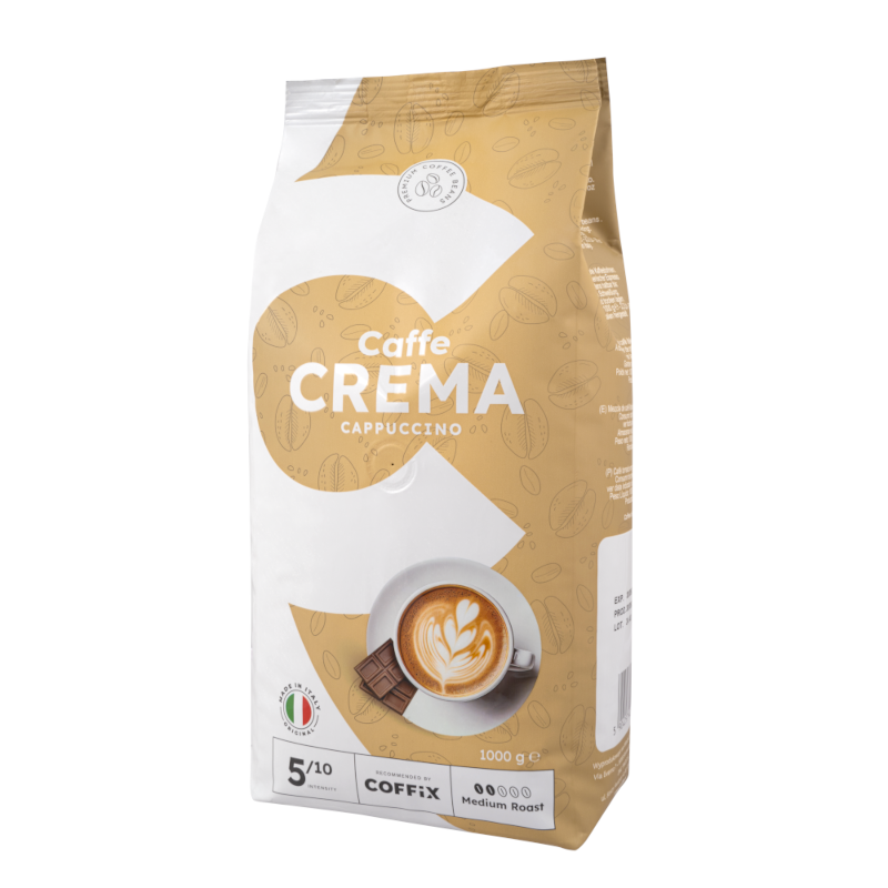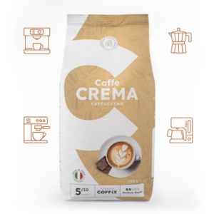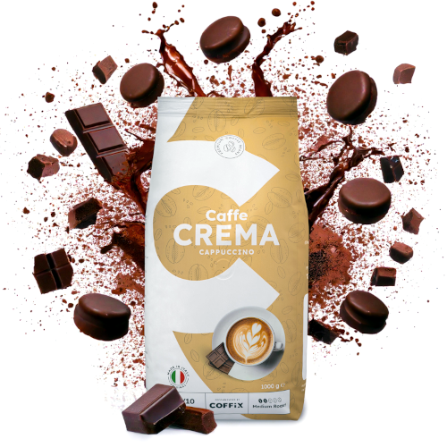 Seria kaw Caffe Crema powstała z myślą o miłośnikach delikatnych kaw, które zachwycają swoją kremowością. To trzy różne mieszanki ziaren: Latte, Cappuccino i 100% Arabica. Każda z nich oferuje unikalny aromat przy zachowaniu wyjątkowo kremowego smaku.