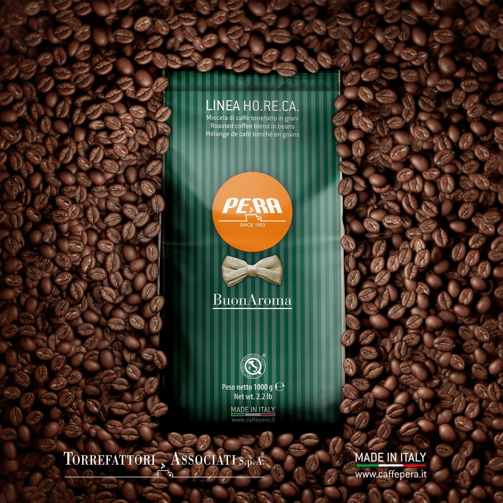 PERA BUON AROMA doskonale sprawdza się zarówno w formie energetyzującego espresso, które ożywia i pobudza zmysły, jak i jako popołudniowa kawa, idealna do delektowania się w gronie bliskich.