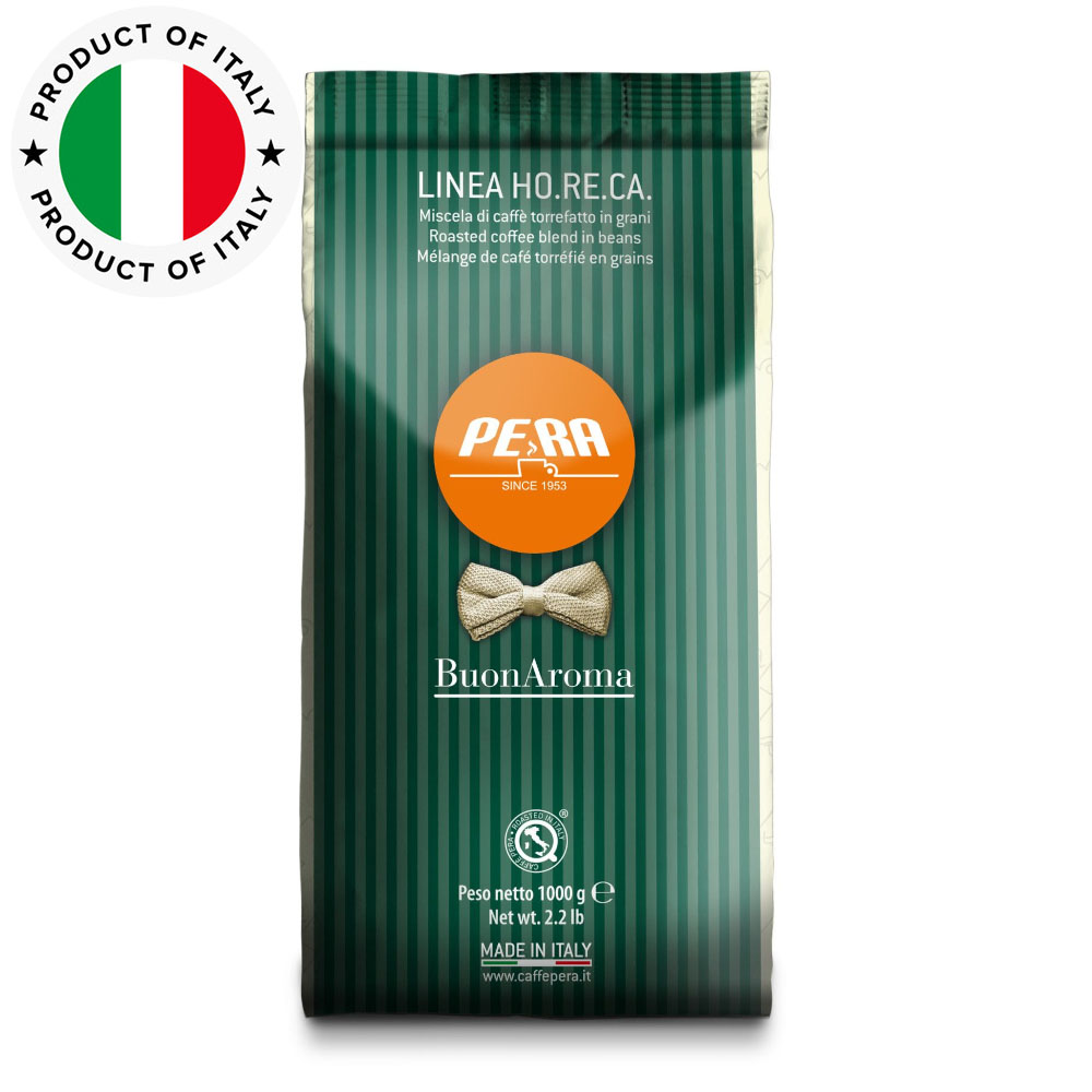 PERA BUON AROMA to doskonała kompozycja składająca się z 65% starannie wyselekcjonowanych ziaren Arabiki oraz 35% ziaren Robusty.