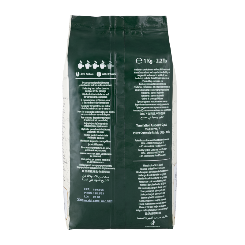 ✔ Mieszanka Arabiki (30%) i Robusty (70%) – idealne połączenie smaku i intensywności ✔ Tradycyjna włoska receptura – palona od 1953 roku w Alessandrii ✔ Wyraziste nuty kakao i subtelna słodycz ✔ Bogate body i aksamitna crema ✔ Świetna do ekspresów ciśnieniowych, kawiarek i automatów ✔ Wybierana przez profesjonalistów – teraz dostępna także dla Ciebie!