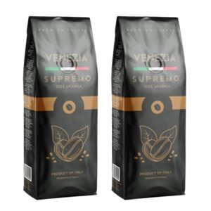 Venezia Supremo 100% Arabica, to kawa jakości Premium dla prawdziwych koneserów kawy. Mieszanka o doskonałym aromacie i wyrazistym charakterze skomponowana z doskonałych selekcjonowanych, naturalnych ziaren 4 najlepszych gatunków Arabiki Kolumbii, Etiopii, Brazylii i Indii, które nadają jej szczególne delikatne nuty owocowe z posmakiem kakao. Doskonała do kaw czarnych jak również wyraźnie przebijająca się w cappuccino, flat white i latte macchiato.