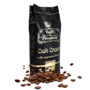 Caffe Veronesi Ciok Cream to starannie skomponowana mieszanka 70% ziaren Arabiki i 30% Robusty. Kawa o łagodnym, zrównoważonym smaku oraz intensywnym aromacie przypominającym delikatne palenie kawy. Posiada silne body i długotrwały posmak kawowy z subtelnymi nutami czekolady. Veronesi Ciok Cream wypalana jest w rodzinnej palarni prowadzonej przez czwarte pokolenie rodziny Veronesi w niewielkim miasteczku Bagnolo in Piano nieopodal Bolonii. Skład: Mieszanka 70% Arabiki i 30% Robusty. Stopień palenia: Średni. Zawartość kofeiny: Średnia. Intensywność: Średnia. Aromat: Intensywny, przypominający delikatne palenie kawy. Nuty smakowe: Łagodny, zrównoważony smak z subtelnymi nutami czekolady.