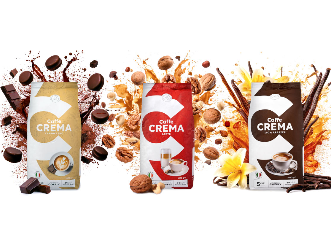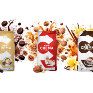 Seria kaw Caffe Crema powstała z myślą o miłośnikach delikatnych kaw, które zachwycają swoją kremowością. To trzy różne mieszanki ziaren: Latte, Cappuccino i 100% Arabica. Każda z nich oferuje unikalny aromat przy zachowaniu wyjątkowo kremowego smaku.
