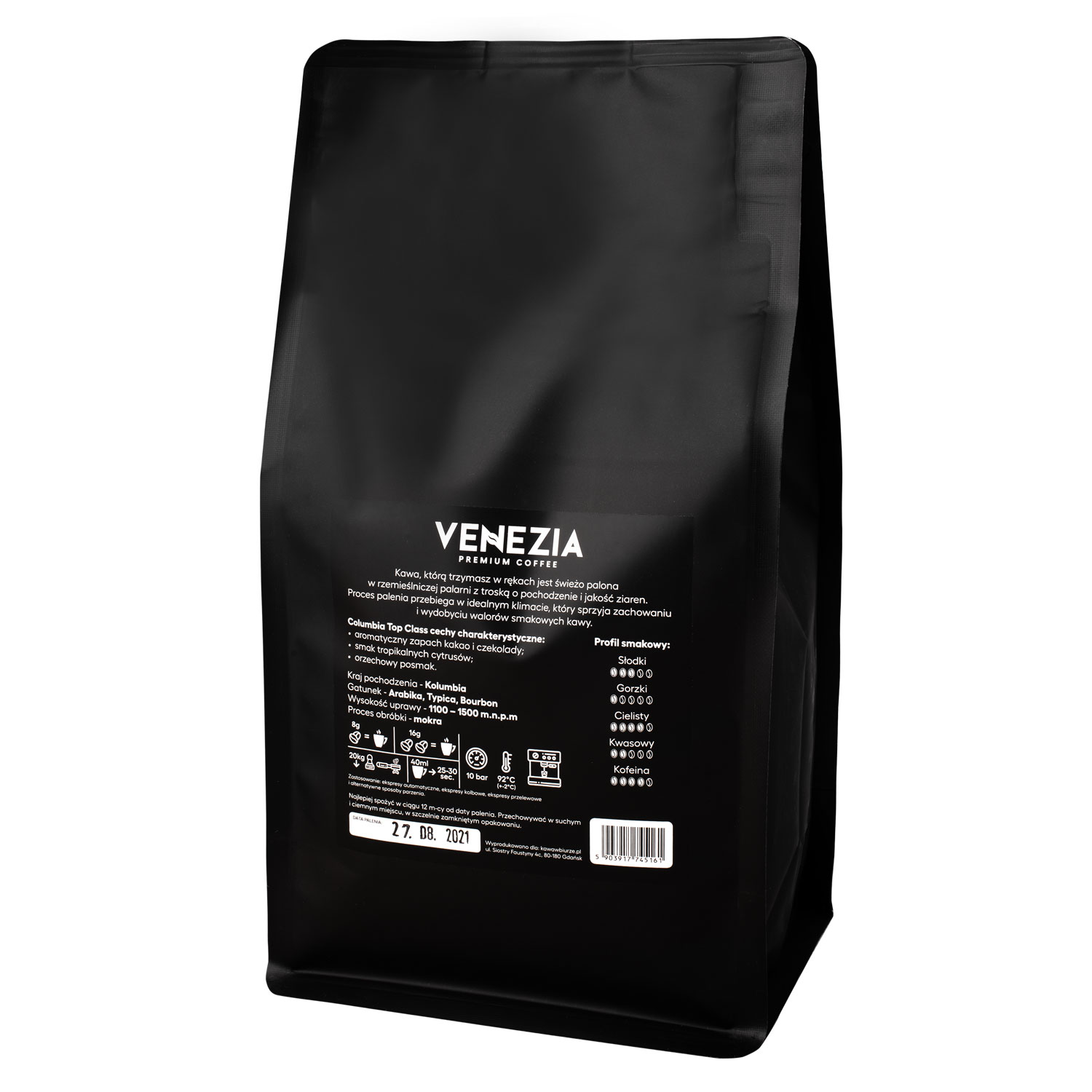 Kawa Ziarnista Venezia Colombia Top Class to ziarna 100% Arabiki. Jest to kawa świeżo palona w rzemieślniczej polskiej palarni z troską o pochodzenie i jakość ziaren. Proces palenia przebiega w idealnym klimacie, który sprzyja zachowaniu i wydobyciu walorów smakowych kawy. Columbia Top Class charakteryzuje się: aromatycznym zapachem kakao i czekolady; smakiem tropikalnych cytrusów; orzechowym posmakiem.