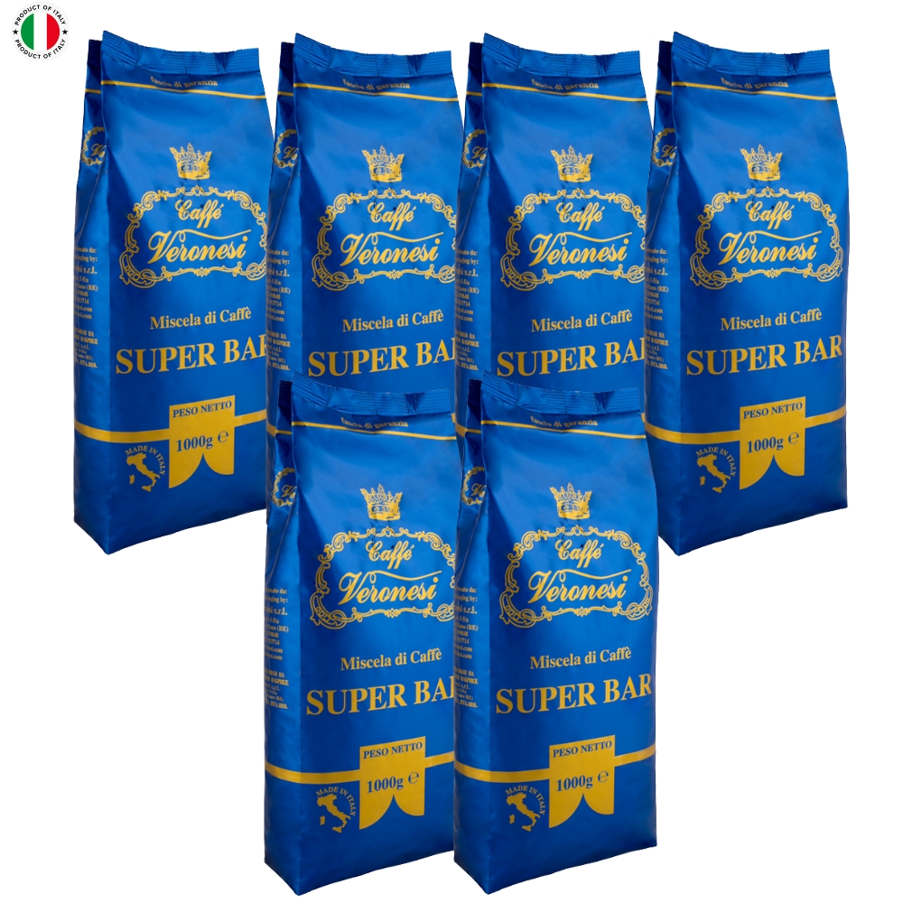 Kawa ziarnista Veronesi Super Bar to wyjątkowa mieszanka ziaren Arabika 80 % z Robustą 20% pochodzących z Koloumbii, Brazylii i oraz Kostaryki. Jakościowy Hit sprzedaży we włoskich kawiarniach. Przyjemny aromat, przypomina kwiatowy delikatny zapach. Kawa o intensywnym aromacie i słodkim delikatnie utrzymującym się posmaku świeżości. Pozbawiona kwasowości. Doskonała kawa do domowego ekspresu automatycznego popularnych marek. Zaskakuje jakościa i wykwitnym smakiem. Absolutny TOP wśród włoskich kaw z regionu Emilia Romagna.
