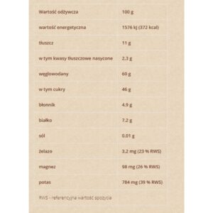 - węglowodany 60g w tym cukry 46g