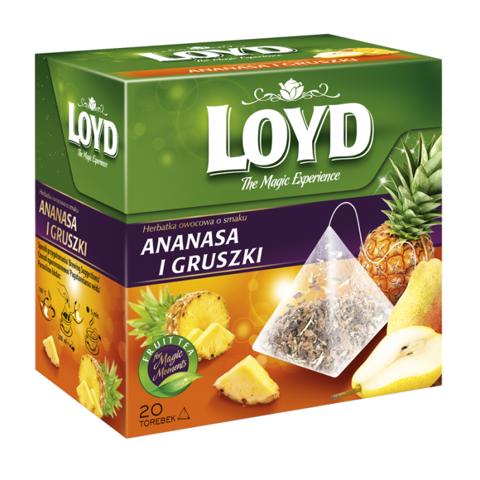 Bierzemy wypełnionego egzotyczną słodyczą ananasa, a potem zapraszamy do tańca równie słodką i nieziemsko aromatyczną gruszkę. Na koniec nie pozostaje nam nic innego, prócz patrzenia z zachwytem na ich pełną gracji harmonię smaków. Każdy z tych owoców sam w sobie jest gwiazdą pierwszej wielkości. Razem – tworzą duet mistrzowskiej klasy. Herbatka LOYD Ananas i Gruszka smakuje to jedna z tych herbat, które wyjątkowo mocno działają na zmysły. Uwodzą je słodyczą, koją miękkim aromatem i wprowadzają w nastrój błogiego relaksu i odprężenia.