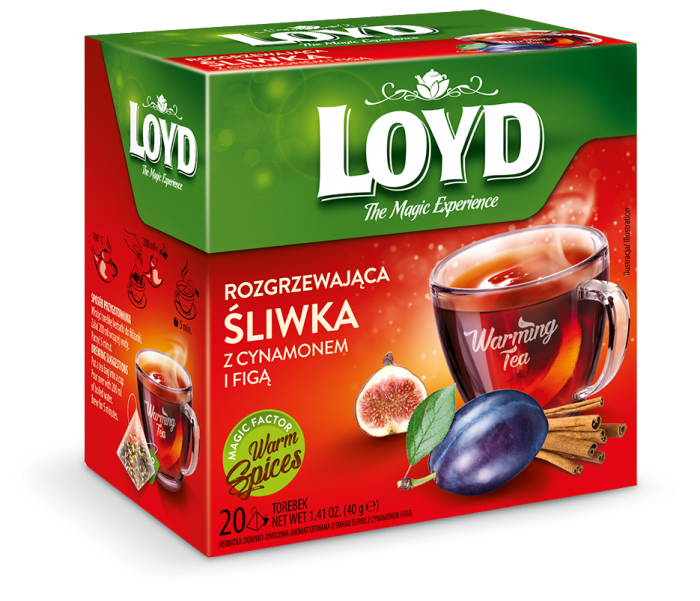 LOYD Herbata rozgrzewająca o smaku słodkiej śliwki i figi z imbirem i cynamonem piramidki