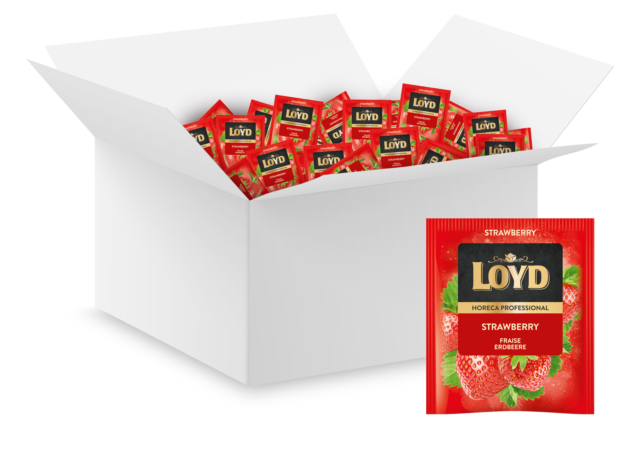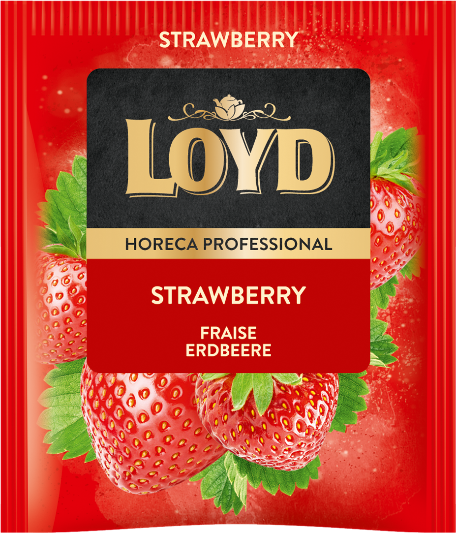 LOYD Strawberry – Lekka herbatka owocowa o smaku soczystej truskawki, odświeżająca i skutecznie gasząca pragnienie. Opakowanie 500szt – pojedyncze koperty.