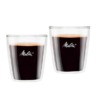 Te pięknie zaprojektowane szklanki do kawy Melitta® wykonane z wysokiej jakości szkła borokrzemowego chroniącego przed pęknięciem i posiadają podwójne ścianki, dzięki czemu z jednej strony utrzymują ciepło kawy, z drugiej natomiast chronią Cię przed oparzeniem. Szklanki są bezpieczne do mycia w zmywarce. Dostępne są w trzech rozmiarach: